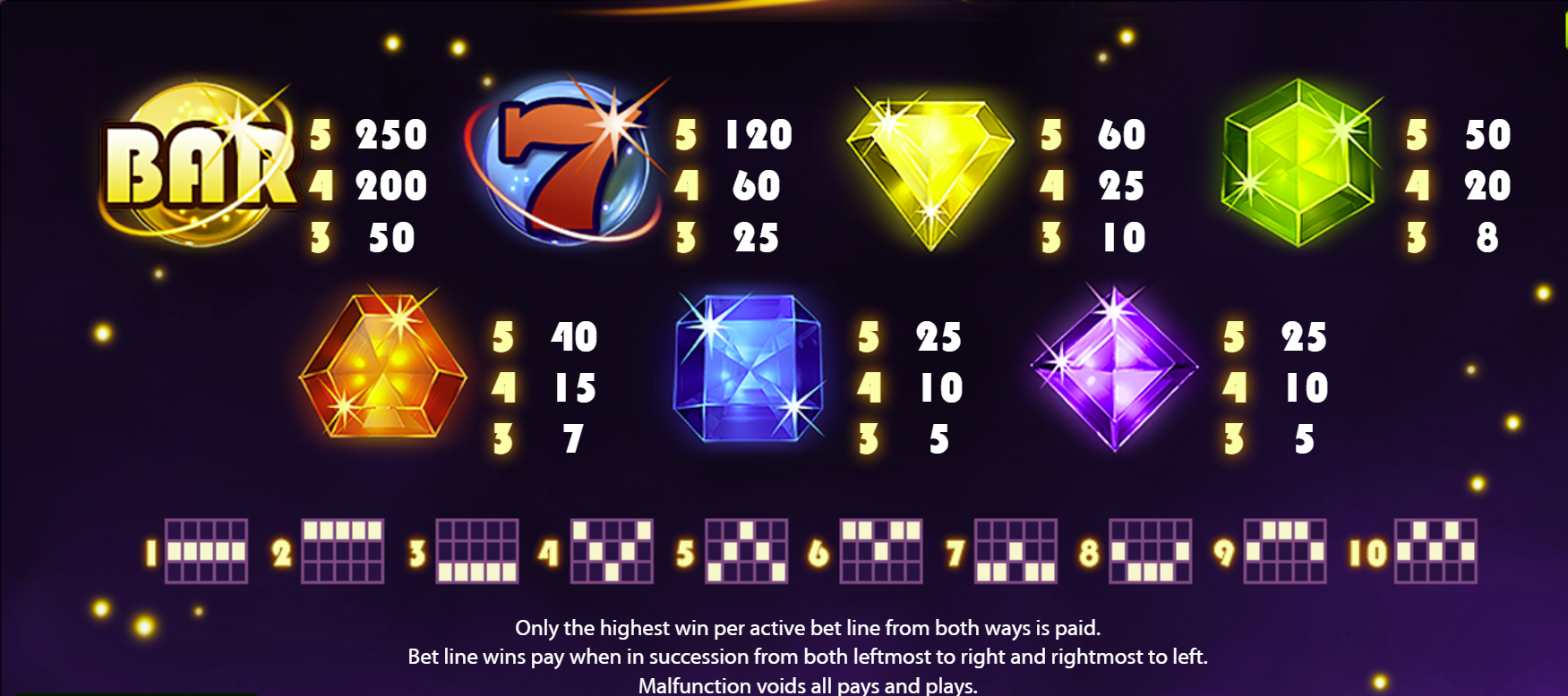 Paylines10 fixed (wins both ways)
